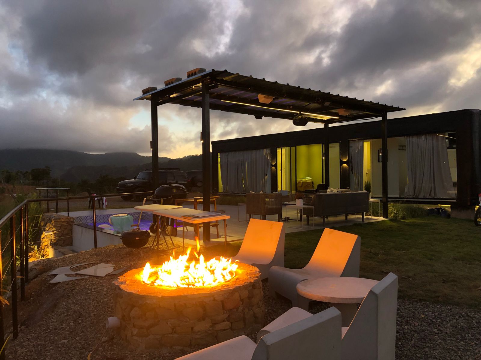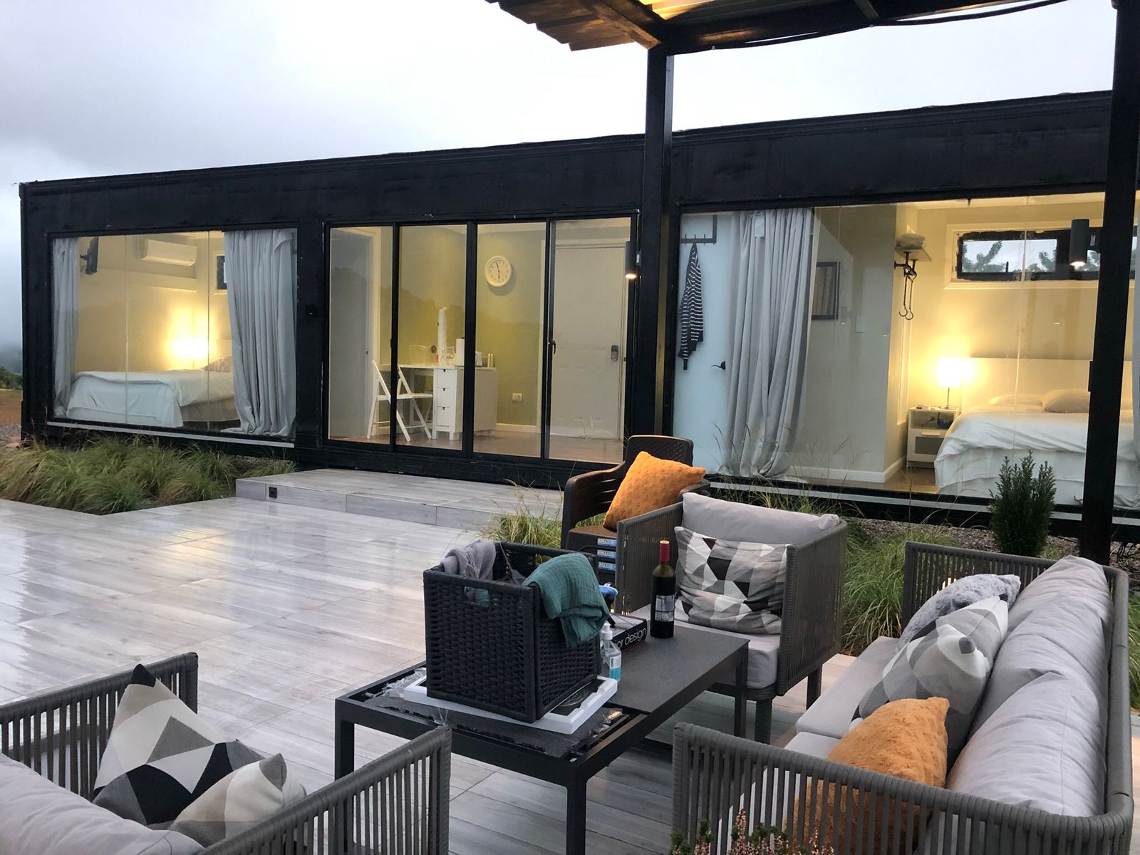 Estas casas se complementan de contenedores con pequeñas habitaciones con vista hacia la montaña permitiendo un ambiente cómodo, acogedor.